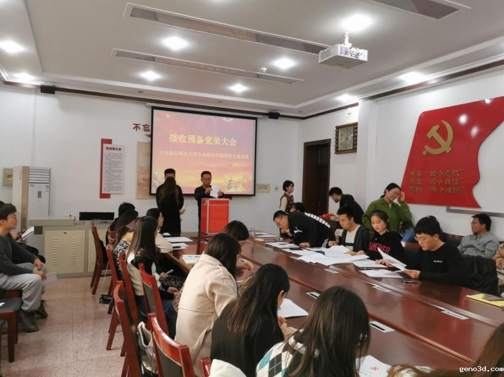 根据党支部发展党员计划,经上级党委预审同意,我院研究生党支部于2021年11月17日下午3点在生物楼208党员活动室召开接收预备党员大会。会议由研究生党支部书记燕艳同志主持,全体研究生党员参加,学院团委书记刘文静列席此次会议。