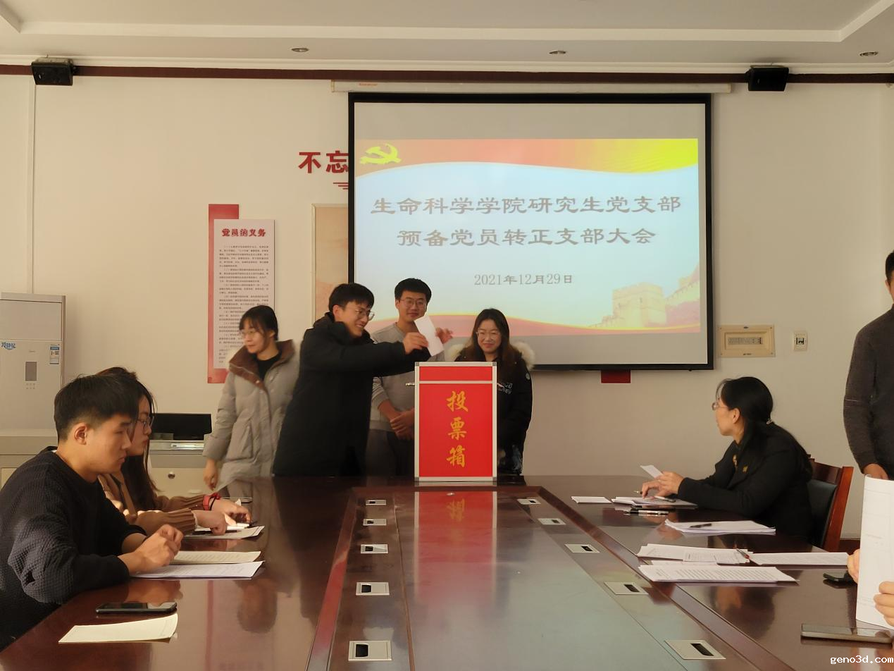 为充分发挥党支部战斗堡垒作用,全面提升党支部发展的生命力,始终保持党的先进性,增强党支部发展的活力。我院研究生党支部于2021年12月29日下午在生物楼208室3点,召开预备党员转正支部大会。会议由党支部书记燕艳同志主持,全体研究生党员参加。