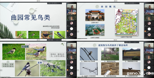 研究生马玉娇生动有趣的讲解了曲园生态环境、曲园常见鸟类两部分内容。她图文并茂的介绍了曲园绿树成荫、生态环境优美,为鸟类提供了适宜的生存环境,并结合视频详细的向大家介绍了曲园中的家雀、珠颈斑鸠、白头鹎、戴胜、啄木鸟、银喉长尾山雀等可爱的精灵们。她提到,曲园师生爱鸟护鸟,为鸟儿创设了更加自然的栖息场所,并呼吁中学生们关注鸟类、保护自然。