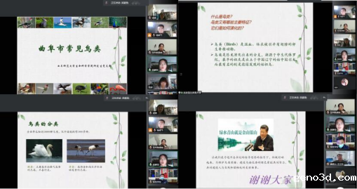 为贯彻党中央“为群众办实事”的号召,践行习近平总书记的生态文明建设理念,提高党员服务当地群众的意识,4月13日,学院研究生党支部结合师范院校特色和学科特点,开展了走进实验学校之“识鸟爱鸟,守护飞翔”的线上主题党日活动。曲阜市部分初中生物学教师、实验学校部分中学生、学院研究生党支部全体党员、部分入党积极分子参与了此次活动。活动由研究生党支部书记燕艳主持,共包含四项内容。