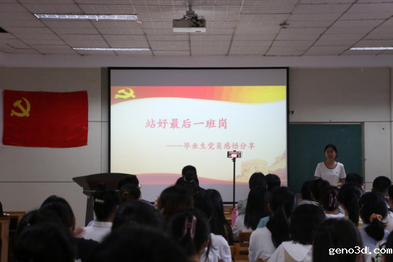 毕业生党员代表颜小涵、高博闻同志,预备党员代表华豫原同志,入党积极分子代表李睿同学,分别分享了自己的学习感悟。他们一致表示党和人民对大学生寄予无限期待,时代也赋予了大学生以光荣责任,新时代中国青年要听习近平总书记的教导,在投身党和人民的共同奋斗中创造更加美好之青春人生!此外,毕业生党员还表达了对新一批预备党员和入党积极分子的希望,能够蓬勃向上、积极进取,在党的领导下,严格要求自己,用自己的所学为社会做出贡献,实现自己的价值,发挥好自身的模范带头作用,将党的初心和使命一代代传承下去。