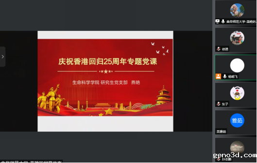 为庆祝香港回归祖国25周年,激励党员大力弘扬伟大建党精神,凝聚强大奋进力量, 7月7日上午,研究生党支部组织开展庆祝香港回归25周年线上主题党日活动,一同学习“习近平总书记在庆祝香港回归祖国25周年暨香港特别行政区第六届政府就职典礼上发表的重要讲话”。会议由研究生党支部书记燕艳主持,全体研究生党员参加。