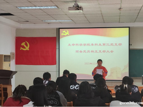 为贯彻落实中央决策部署,壮大党员队伍,根据党员发展流程,2023年12月4日,我院本科生第三党支部于生物楼232室召开预备党员转正支部大会。本次会议由第三党支部书记袁晓涵同志主持。