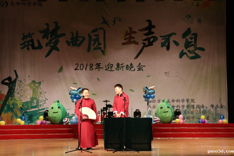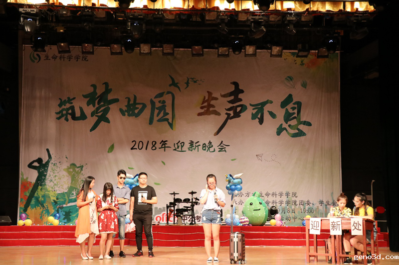 为了能使新生更快融入大学生活,让新生家长更快了解生命科学学院温馨的人文氛围以及师生积极向上的精神风貌,我院决定于新生报到当天晚上七点举行迎新晚会,为此生命科学学院团委及学生会成员和演职人员牺牲了部分假期时间进行训练彩排,同时也积极鼓励新生及家长加入了演职人员队伍。新老生和家长代表共同努力为2018级的新生们留下了一段美好的回忆,充分表达了生命科学学院大家庭欢迎新生加入的热情,为即将踏上大学新征程的新生送上前行的祝福。