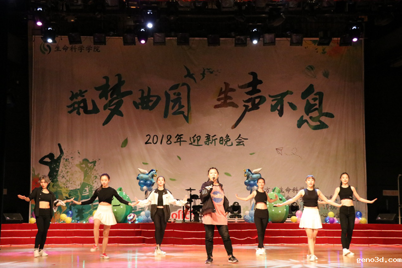 本次晚会在介绍学校和学院的视频中拉开帷幕,随后2018级辅导员刘文静老师发言,刘老师对2018级同学的到来表示热烈欢迎,并给予了深切期望。接下来,生命科学学院啦啦操队为大家带来开场节目《runaway baby》,使得全场的氛围瞬间活跃了起来。《趾间的音符》中花样跳绳的队员们熟练而有难度的动作惊艳全场。公路乐队用迷人的歌声为大家演奏了《私奔》,带来了一场听觉盛宴,使大家沉浸在了音乐的海洋里。紧接着小品《新生大爆炸》,句句都是笑点,呈现出了迎新过程中一幕幕的酸甜苦辣。歌曲《不为谁而作的歌》优美动人,悦耳动听。之后的乐器演奏《战马奔腾》音调激愤昂扬,节奏铿锵,将战马嘶鸣和万马奔腾表现的淋漓尽致。相声《我的大学》笑翻了全场,每个人听的不亦乐乎。歌曲串烧《一剪梅 爱江山更爱美人》,美了眼,醉了心。古典舞《出水莲》,舞者活泼自由,动作丰富优美,让大家心情愉悦。歌伴舞《Ei Ei》,歌曲欢快,舞蹈美丽而又帅气。相声《四德新生》笑的人前仰后合,却又与现实结合,感染人心。《最好的舞台》中,舞蹈演员们动作炫酷,他们的舞台是与众不同的帅气。双截棍表演《盘龙卧虎》中高难度的动作,让在场的所有人欢呼尖叫。整个晚会在歌曲《梦想天空分外蓝》中画上了一个圆满的句号。