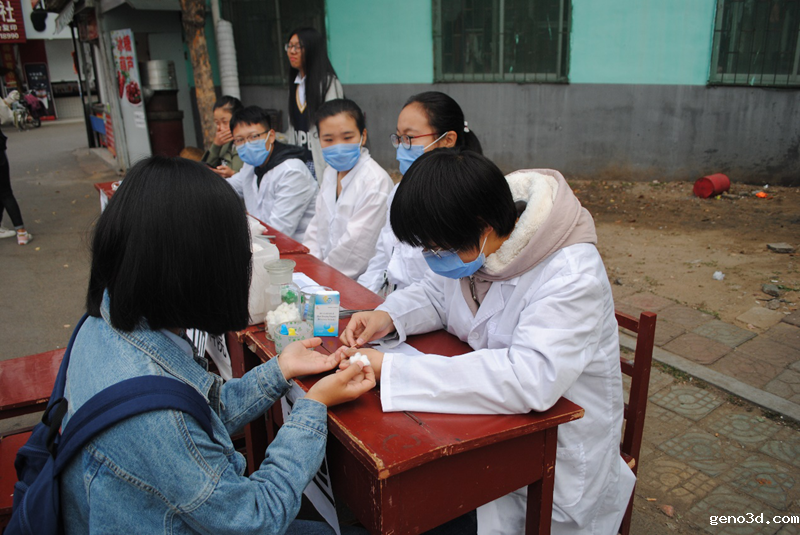 为了更好的服务大家,志愿者们都经过了严格的培训。测量现场桌椅,血压计和测血型的工具都摆放得十分整齐。活动开展不久,便吸引了很多人驻足停留。志愿者们消毒、采取血样、滴定血清等,有条不紊地为过往的师生测量血型。志愿者们也认真地为师生们测量血压,并耐心为其讲解血压有关知识,并给大家提出了一些健康的小常识。最后将所测情况汇总,完成了一个血型血压的小调查。现场气氛十分热情,丝毫不见秋天带来的寒冷。