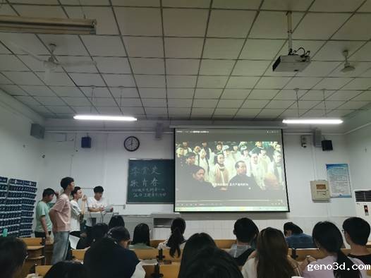 本次活动分为“党史故事我来讲”、“以史为镜,声临其境”之党史电影配音、“献礼百年,书写祝福”三个环节。团支书尚予欣首先致开幕词,呼吁班级同学积极参与党史学习,发扬五四精神,用知识文化力量铸牢中华民族共同体意识。班级五名入党积极分子分别就“红船精神”、“开国大典”、“脱贫攻坚”等主题依次分享党史故事,带领同学们走近建党百年中的重要历史事件,了解党史背后所蕴含的精神内涵和历史意义。随后进行了“以史为镜,声临其境”的党史电影配音活动,同学们现场对电影片段进行配音,在言行语调的模仿中,同学们一同回望历史,致敬先辈,感受着穿越时空的历史厚重与特殊情感。活动最后,同学们书写下心中对党的美好祝福,并合影留念。