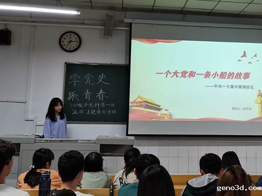 为庆祝中国共产党成立一百周年,学史明理,提升支部青年的光荣感与使命感,5月13日,我院2020级环境科学一班团支部“学党史,振青春”主题团日活动于生物楼332教室成功举办,团支部全体成员参加了本次活动。
